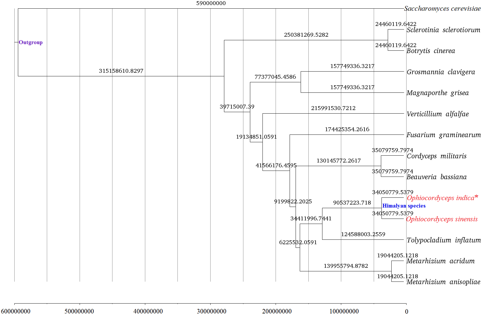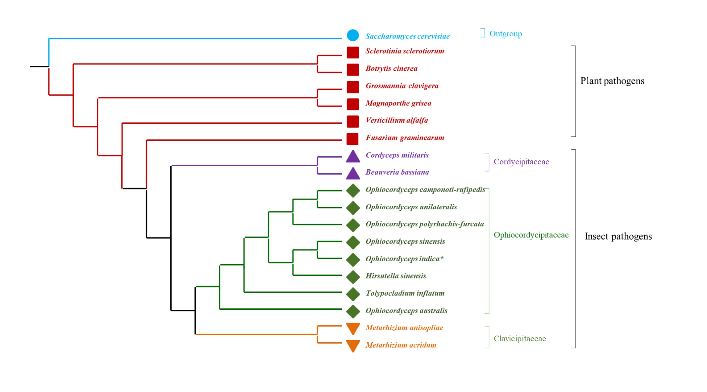 Phylogenetic relationship among O. indica with known fungal pathogens